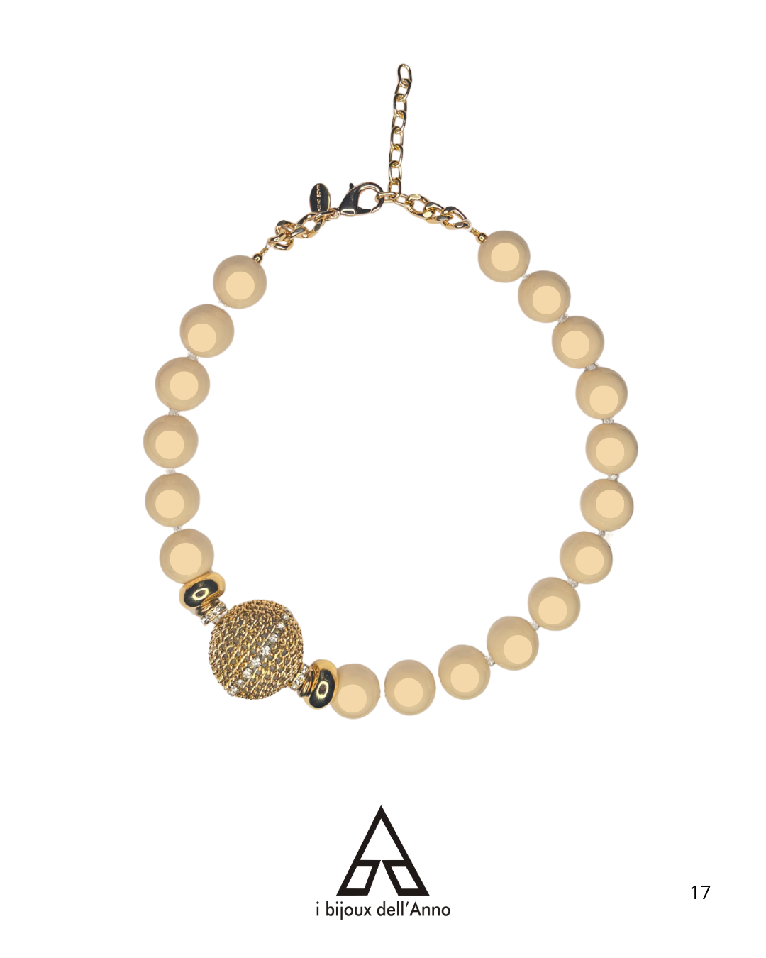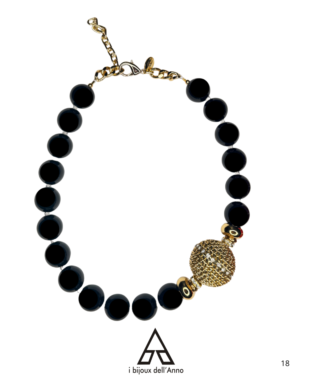 Realizzata con sfere in resina intervallate da micro cristalli Swarovski , dettagli oro lucido ed un particolare sferone interamente realizzato a mano.